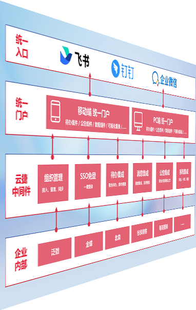 对协作平台提供支持服务,,,支持企业应用与协作平台对接,,,,包含组织同步、、、、消息集成、、待办集成等。。支持目前主流的协作平台:钉钉、、、企微和飞书。。