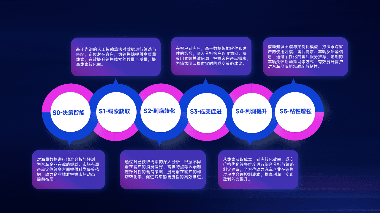 通过拓宽潜在客户来源、、、、优化线索分配并提高到店转化率,,以增强销售效率。。同时,,,利用线索数据不断优化分析模型,,,有效提升转化率,,扩大营销影响力。。